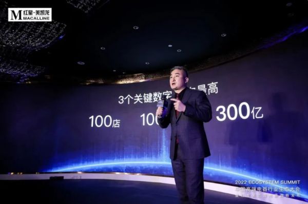 在2022中国高端电器行业生态大会上,红星美凯龙家居集团执行总裁兼大营运中心总经理朱家桂宣布,要在两年内打造100家超过1万平方米的智能电器生活馆。这100家顶配的电器馆预计将为合作伙伴创造300亿元的销售额。