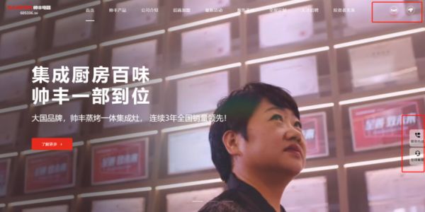 当用户在官网对帅丰进行了全面的了解后,还可以通过右上角的图标直接跳转到天猫和京东店铺,进行安心购物,全新升级的官网带来了更全面的功能体验。