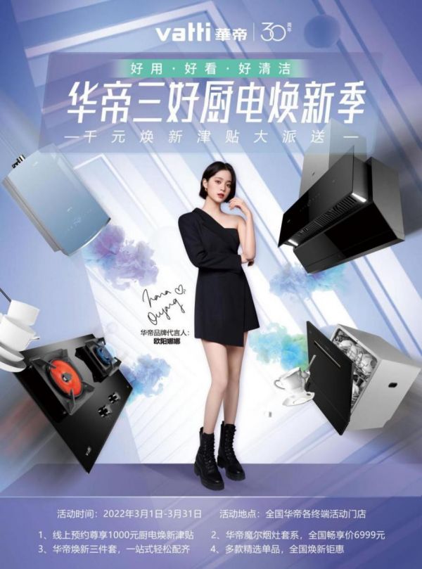 3月1日-31日期间,华帝全国开展#华帝三好厨电焕新季#活动,推出华帝魔尔套系热卖产品,线上预约(预约链接https://m.sale.vatti.com.cn/activity/index)即可尊享至高1000元厨电焕新津贴,活动期间,华帝魔尔烟灶套系全国畅享价仅需6999元,华帝鸿蒙智联新品燃气热水器JW6i仅2999元,华帝焕新三件套及多款精选单品等焕新钜惠(详情咨询全国华帝各终端活动门店)。