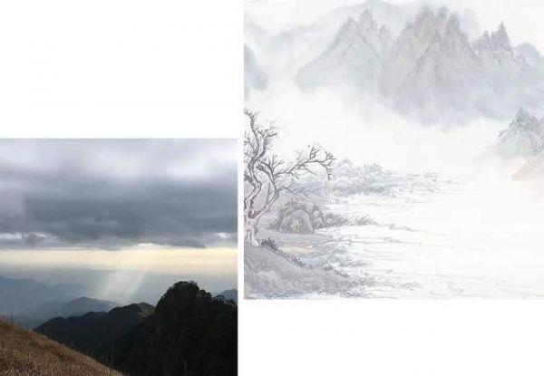 绘制出一幅意境空灵的山水墨画