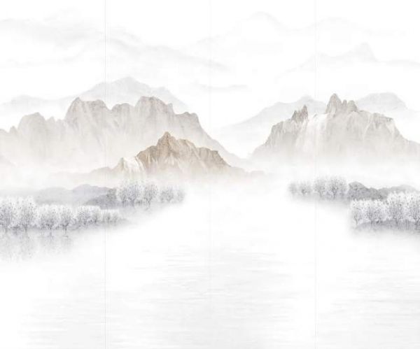 “山水湖畔”背景墙将水墨画的留白