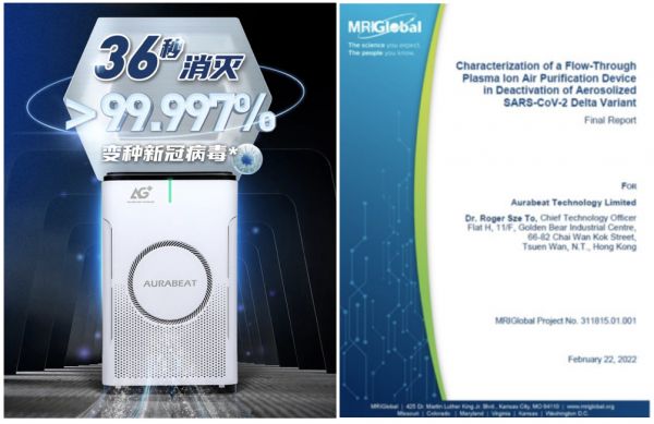 作为国内权威机构”中科院P4实验室”所认证的99.9%消灭新冠品牌, AURABEAT爱乐彼其强大的病毒消杀实力自然不在话下,近日更是在MRI美国生化实验室测试中创造出36 秒内消灭空气中>99.997%变种新冠病毒的重要成就。