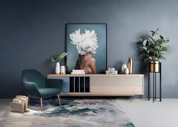 一般情况下切忌色彩对比太过于强烈,也忌讳画品色彩与室内配色完全孤立,要尽量做到色彩的有机呼应,最好的办法是画品色彩主色从主要家具中提取,而点缀的辅色可以从饰品中提取。