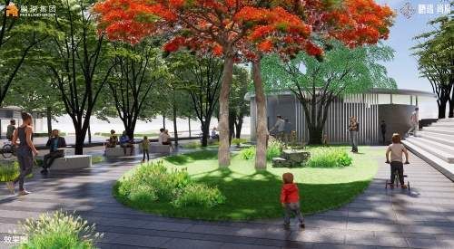 北区为漫步式商业街区,后期欲打造成涵盖玩乐、美食、购物、文化、时尚等多元业态的日常生活场所,家庭所需皆可在家门口一站解决,实现家门口的生活闭环。让自然与生活心意相通,俯仰之间皆风景,所及之处皆生活,使居者生活重回自然雅逸之境,安心之余更舒心。