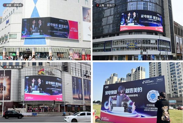线上主阵地聚焦抖音平台的同时,也充分发挥了美的线下渠道优势,深挖高潜用户群体所在区域,将美的抖音电商超级品牌日的活动广告,覆盖到全国多家品牌门店、小区楼盘、人流商圈的户外点位,将活动氛围感拉满的同时实现精准触达。