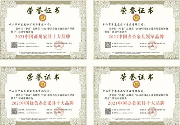 时光不止,深耕不息,过去39年,中泰家具持之以恒、精益求精、激流勇进、奋发图强,并以客户需求为导向,持续打磨自身工艺与技术,用科技改变生活,用工艺改变办公模式,带给人们全新的、更为优秀的办公体验。凭借强大的技术实力以及完善的管理体系,中泰家具获得ISO9001质量管理体系等多项资质认证以及“广东省名牌产品”、“广东省著名商标”、“广东省全国名牌”等诸多荣誉。在由招投标供应链品牌推介平台主办的“2021中国办公及商用家具评价推介”活动中,中泰家具再次荣获2021中国商用家具十大品牌、2021中国办公家具领军品牌、2021中国办公家具十大品牌、2021中国绿色办公家具十大品牌等重量级殊荣。