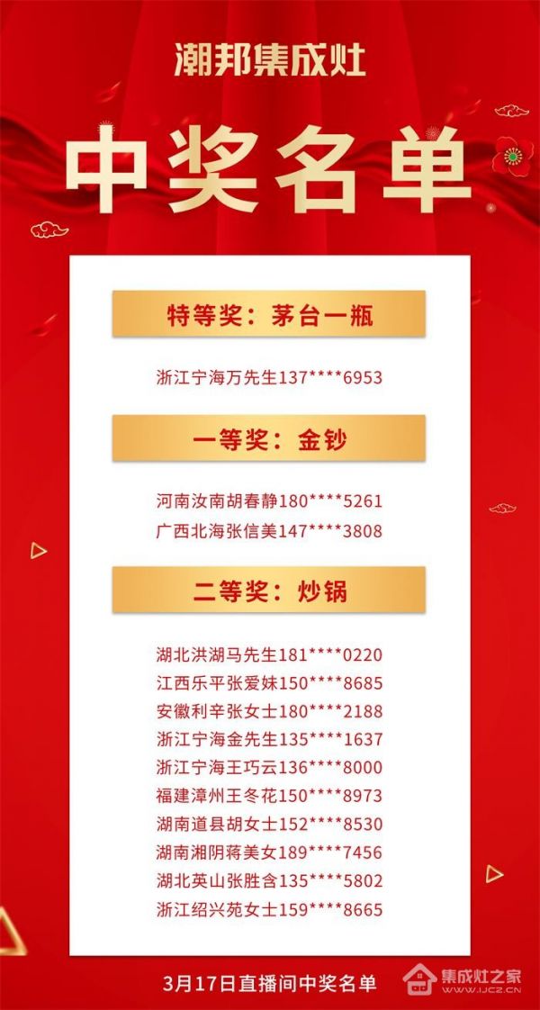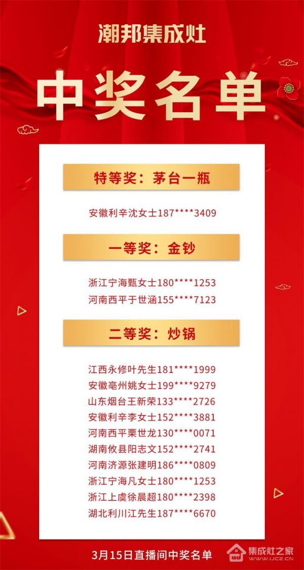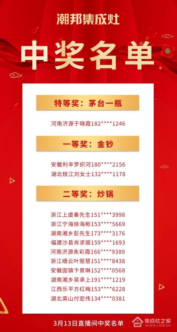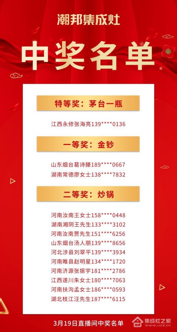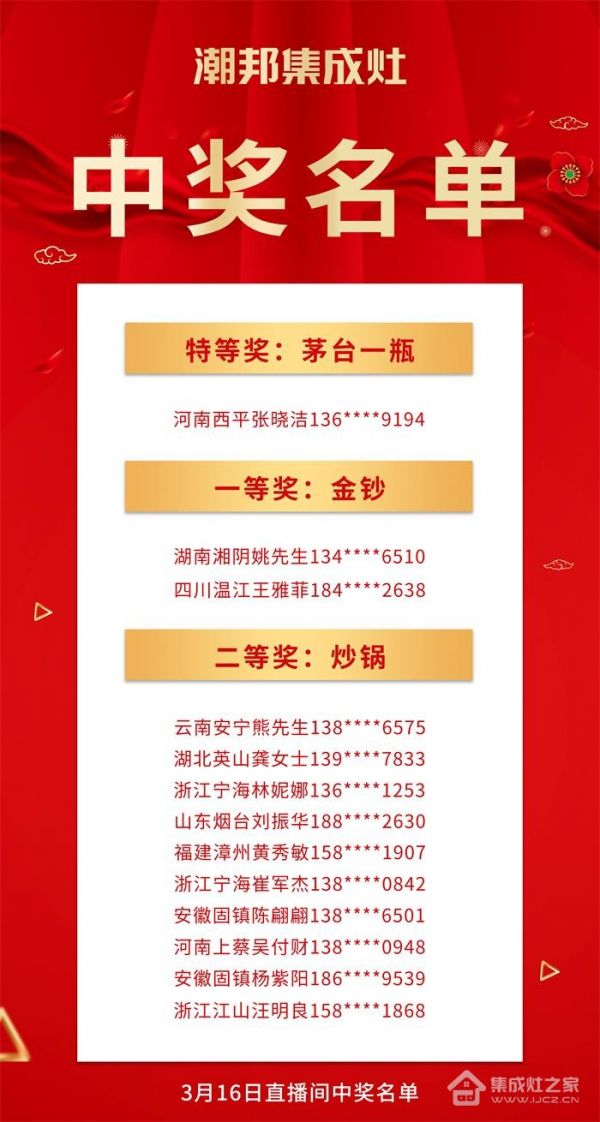 家电快讯|“购集成灶抽茅台和金钞”潮邦2022开门红获奖名单公布