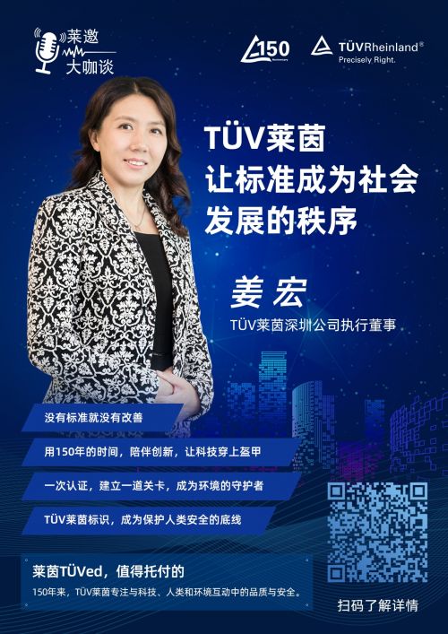 TUV莱茵深圳公司执行董事姜宏女士接受留仙科技城采访,分享TUV莱茵150年品牌历程。