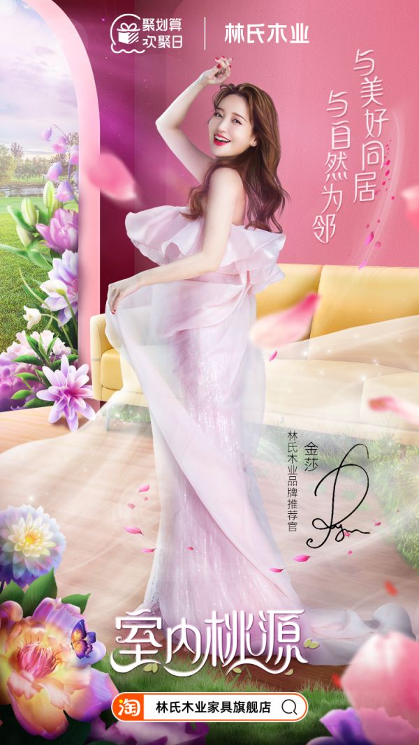 3月29日,林氏木业联合聚划算“欢聚日”以“室内桃源”为主题,在林氏木业天猫直播间内,向粉丝分享前沿的生态时尚家居生活方式,其中就不乏新·生态沙发的身影。和生态系列沙发一样“多才多艺”、同时拥有“治愈歌姬、甜系女神、创作才女”等多重身份的金莎,也会化身“林氏木业品牌推荐官”。届时,粉丝只要登陆林氏木业直播间,即可收获莎莎子的时尚同款。
