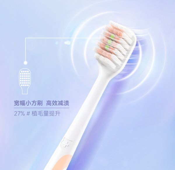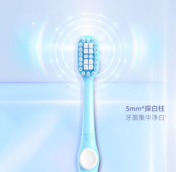 uff加持:外围0.5mm强韧磨尖丝,紧密贴合沟槽处,高效摩擦,深入清洁齿面;内侧0.12mm纤细棉感刷丝,深入牙齿缝隙及牙龈沟,轻松去软垢,帮助净白牙齿,助力快速拥有柔光亮白“括弧笑”。