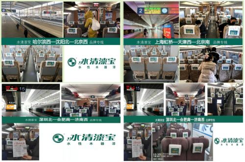 水清漆宝强势登陆中国高铁,以矩阵式、气场强大的高铁头片,全面展示产品形象。全方位、沉浸式、强接触的传播场景,也让水清漆宝“专业水性木器家具漆”、“高透、闪PU高档家具漆”、“专业UV木器家具漆”的特点深入人心,让品牌知名度、美誉度再上一个新台阶。