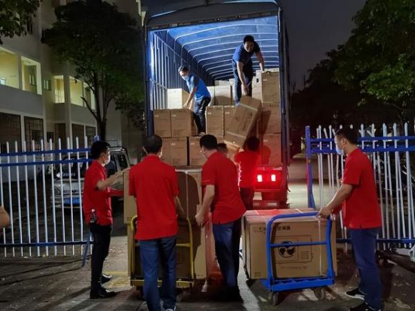 3月17日晚上8点,北海国美30名员工前往隔离点,协助卸货,安装工作。