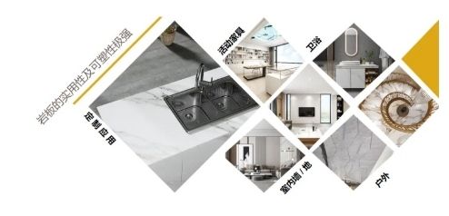 大规格岩板产品能承载更多纹理,连纹拼接,产品应用自由裁切,一件成型韧性好,广泛应用于墙面、台面、橱柜、复合饰面板等多元家居应用,是眼下最火热的建材产品之一。