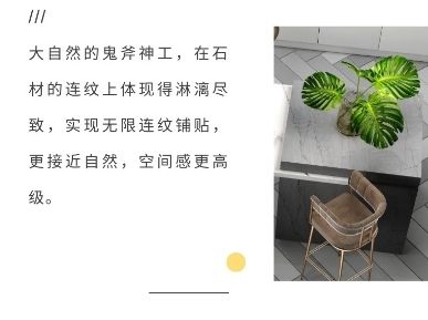 看到这里,你可能会理所当然觉得岩板就是越大越好,其实不然,在众多岩板规格中,能实现“一片到顶”的更受青睐,那无疑就是800X2600m规格岩板,其适用范围广,在运输搬运上也占据极大优势,产品无需切割,铺贴留缝更少,空间视觉效果更出众。