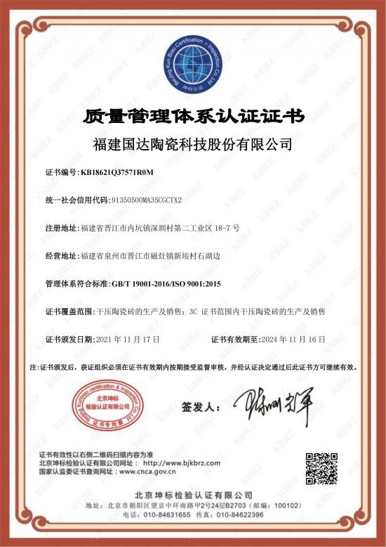 自成立以来,国达陶瓷一直将绿色低碳理念贯穿于产品研发制造全过程,用实际行动引领绿色环保发展,因此收获了丰硕的荣誉成果,先后通过国家3C认证、ISO9001:2015质量管理体系认证、ISO14001:2015环境管理体系认证、ISO45001:2018职业健康安全管理体系认证,并斩获中国绿色环保产品、中国建筑工程重点推荐产品、全国消费者放心满意品牌、陶瓷罗马柱领军品牌、整装工程推荐品牌、2021年陶瓷行业新锐榜年度产品金奖等众多美誉。