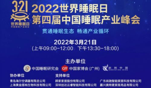 2022年3月21日,由中国睡眠研究会、中国家博会联合主办、科创中国支持的2022世界睡眠日·第四届中国睡眠产业峰会线上召开。会议以“贯通睡眠生态,畅通产业循环”为主题,从建立标准、科研临床、产业发展,三个不同维度,以“良好睡眠,健康同行”这一核心主题响应“健康中国”的国家策略。