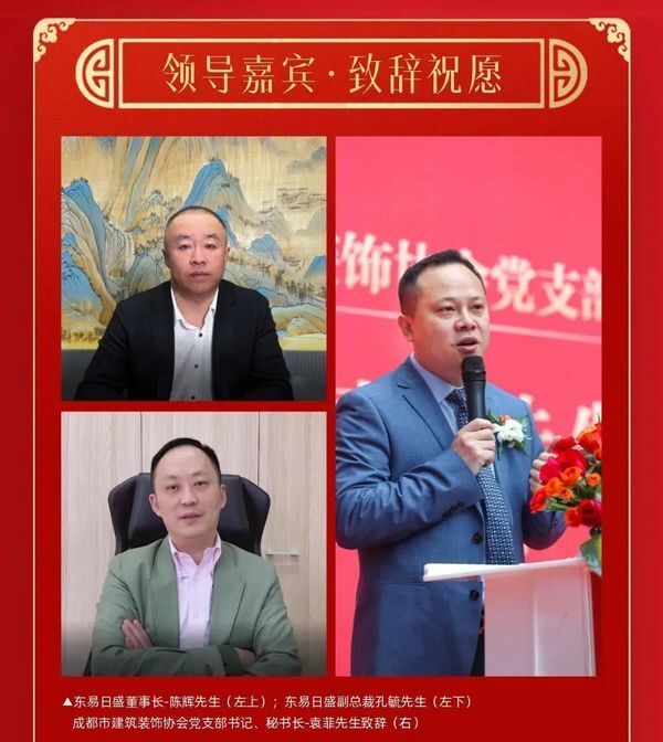 成都分公司超放心家装旗舰店此次盛大开业庆典,东易日盛集团董事长陈辉、东易日盛集团副总裁孔毓线上参与,为行业、嘉宾及媒体朋友们送上真挚祝福。