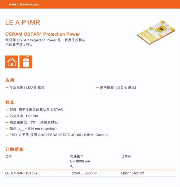 当贝F5采用的是欧司朗新一代Osram Ostar Projection Power P1MR产品,此产品的光通量可达8000MA,亮度在2240-3300lm之间。