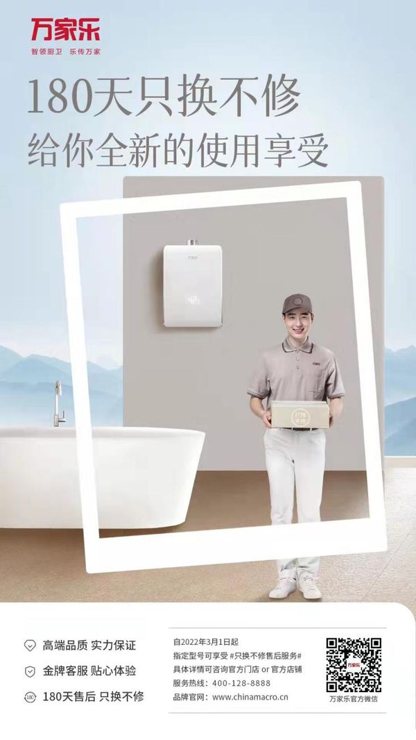 万家乐再加码售后福利, 推“180天只换不修”服务