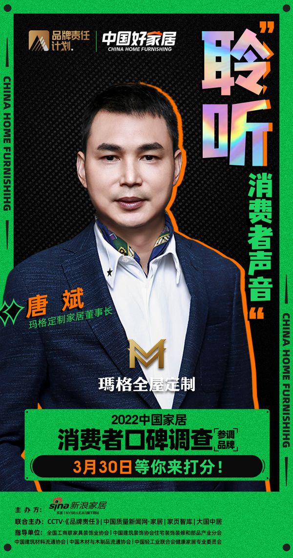“聆听消费者声音,维护消费者权益”,经过主办方进行资格审查后, “玛格全屋定制”作为《中国好家居——2022中国家居消费者口碑调查》参调品牌,3月30日诚邀您前来打分!