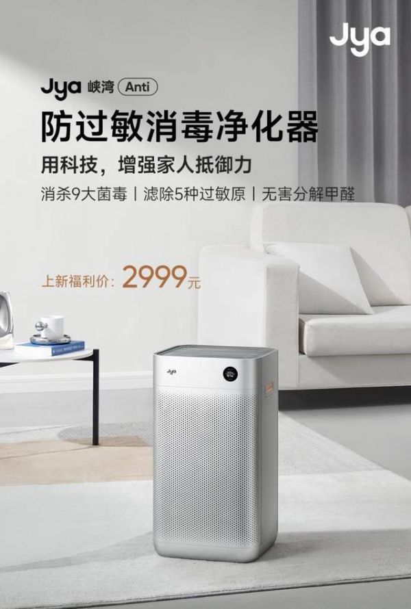 近日,智米科技旗下专业空气净化器品牌Jya正式发布一款通过卫健委审核备案,符合国家卫生部《消毒技术规范》标准的空气净化器产品——Jya峡湾Anti防过敏消毒空气净化器,该产品采用上亿级等离子消杀技术,可以消杀空气中9大常见菌毒,高效滤除5大常见过敏原,彻底催化分解甲醛,无二次污染,让家中的空气真正洁净。同时,该产品还获得空气净化器品类全球首批TÜV莱茵过敏关怀认证。目前,该产品已于3月28日在各电商平台陆续开售。