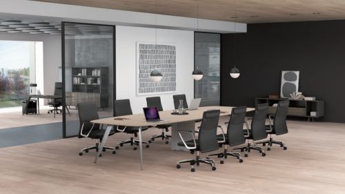 Kristal满足当代年轻化主管空间配套的需求,为现代办公空间提供更为高效的工作和创意支持,触控式后柜让个性化展示空间更随性,是实用与颜值的融合;Kristal会议桌,彰显锋芒又不失圆润,令会议空间更加聚焦的同时,也带来现代美感;圆角矮柜和茶几,保证洽谈空间的安心边界感,让交流过程变得舒适放松;通透烟灰色桌面,让接待空间视野简洁有序,提升效率。