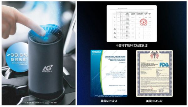 独家研发的“AG+银离子专业配方抗病毒技术”, 在36 秒内消灭空气中99.997%变种新冠病毒,获得中科院P4实验室、美国MRIGLOBAL、美国FDA等世界首屈一指的机构认证。