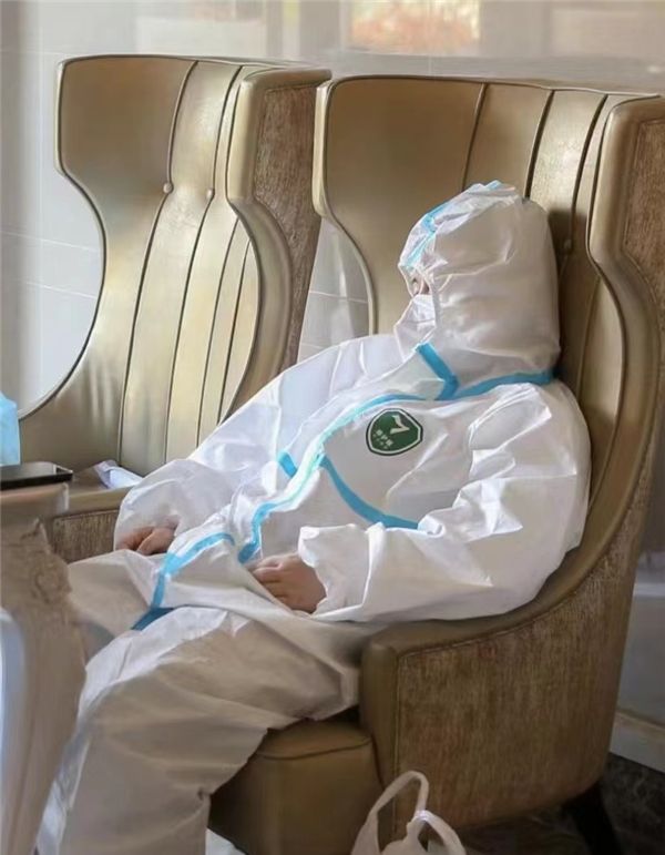 一上午下来,坐在椅子上不曾挪开一步,“我们一天下来不敢喝水,顶多一小口润润唇,水喝多了会想去洗手间,可是人手不足,你走了就意味着检测工作要暂停,这样会拖垮整个现场的节奏。而且也没时间去喝水,每一个环节都要快,我们要用最快的速度完成录入,让每个来的人都能做上核酸,节省一秒钟,就可以多检测一个人员。”