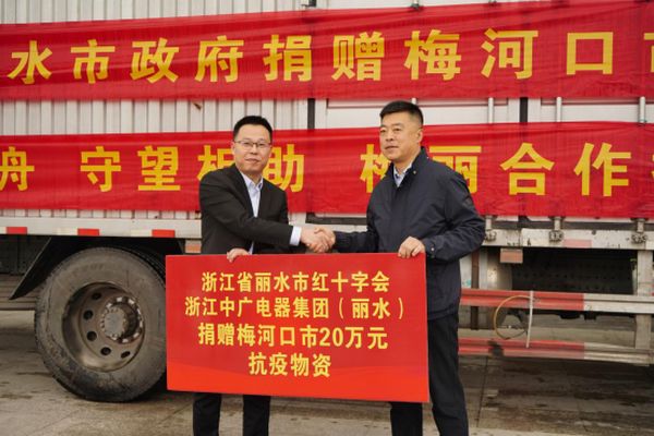 风雨同舟,守望相助。今日上午8时许,由丽水市政府、丽水红十字会和中广电器集团等共同参与的“支援吉林省梅河口市抗疫物资捐赠仪式”,在热泵领军企业浙江中广电器集团股份有限公司的厂区举行。