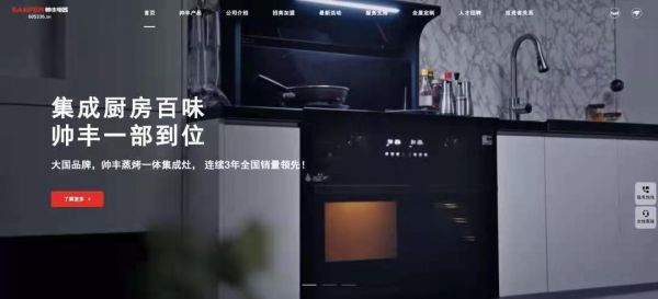 近期,帅丰集成灶还上线了企业全新官网,对帅丰感兴趣的消费者还可以点击帅丰集成灶新官网,一键解锁帅丰更多的超值产品、硬核实力、钜惠活动。