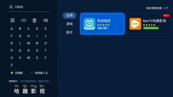 进入当贝市场后搜索【YXDS】,下载安装。安装好后就可以直接进入,找到CCTV-5观看了~