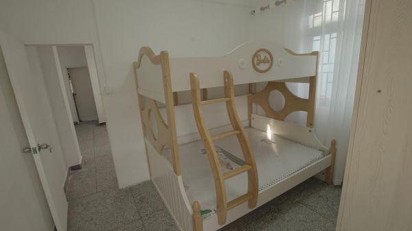 为了更快交付,土巴兔公益团队与施工人员一起动手,大家协作,高效地处理了地面、刷白了墙面、重铺了电线,还根据房间布局,为代奶奶一家购置了电视柜、茶几、沙发、饭桌等生活必需品。考虑到孩子们逐渐长大,老人也需要休息好,团队将旧床移出,定制了全新的上下床。