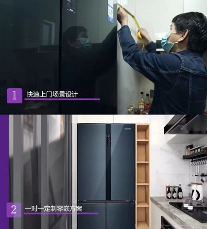 卡萨帝冰箱,新一代厨房,为用户提供一站式零嵌场景服务,零嵌家装季,购买卡萨帝零距离自由嵌入式冰箱,就有机会获得0元改造、0元设计、0元收纳的同款服务。