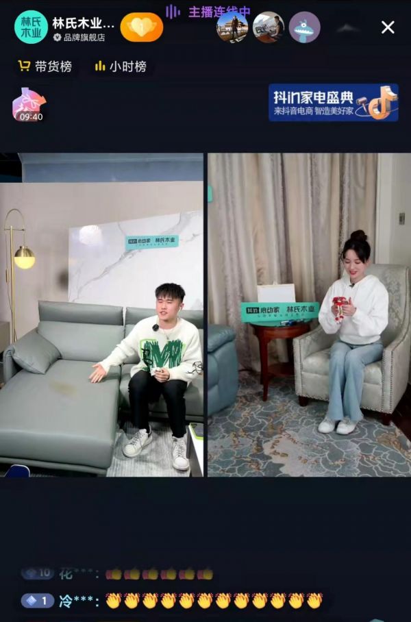 不仅仅是莎莎子,当晚,林氏家居品牌部副总裁李承泽也同样现身直播间,为直播间粉丝讲解新生态系列产品理念,与莎莎子共同传达林氏木业的自然主义理念,实现直播间GMV最大化。