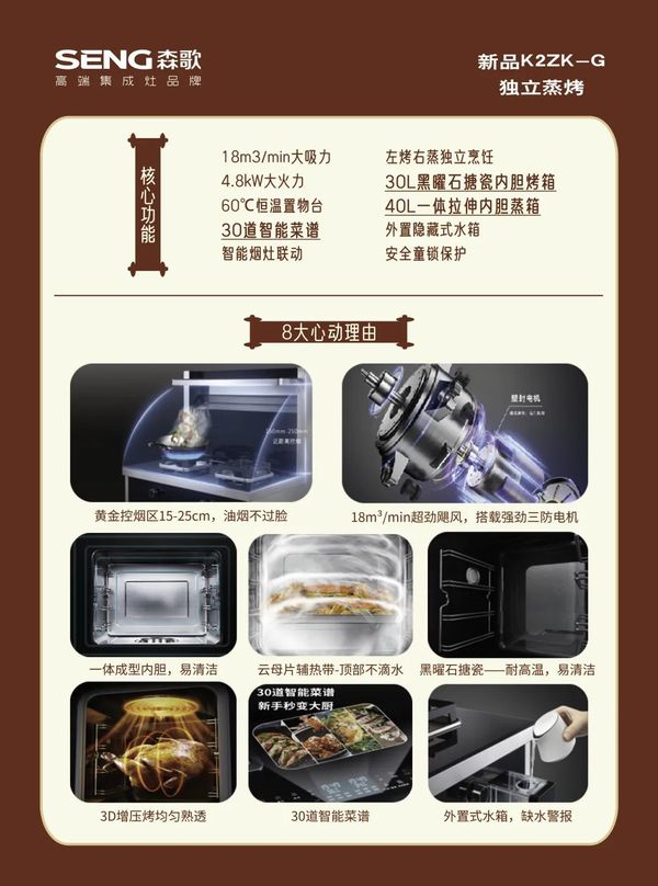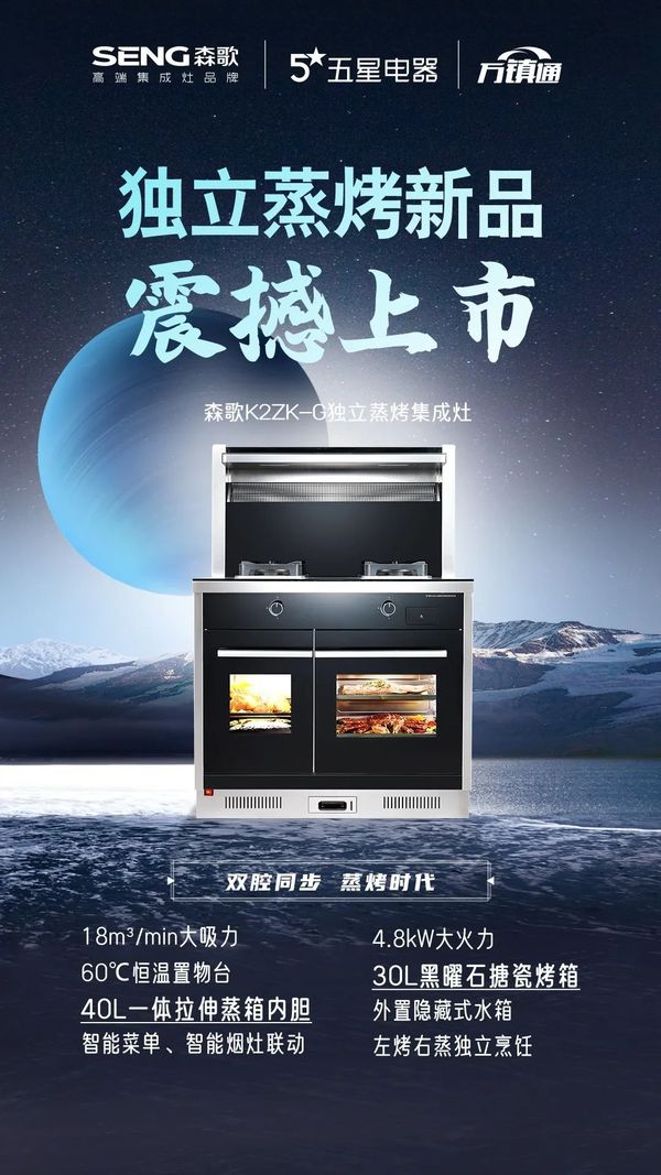 新品独立蒸烤K2ZK-G的好开端奠定了其市场潜力。森歌将继续用至臻匠心赋能理想品质厨房,全力打造智能集成厨房时代。