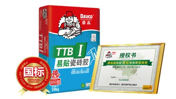 德高TTBI易贴瓷砖胶,加水即可使用,让贴砖更简单!相比传统厚贴工艺,薄贴工艺平均减少铺贴度达25px以上,更省空间,不易出现空鼓,贴得更牢固。更重要的是德高TTB1易贴瓷砖胶产品通过“国标”标准(GB25181-2019《预拌砂浆》),所以更加安全可靠且低碳环保。使用德高瓷砖胶,采用薄贴工艺,节省碳排放,保护青山绿水。