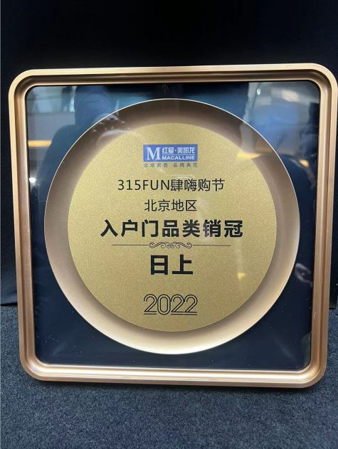 2022年3月30日,红星美凯龙“315 FUN肆嗨购节”总结大会及颁奖典礼在北京市营发中心隆重举行,会上发布了此次315活动业内品类销冠夺魁榜单,日上凭借优质的产品和服务一举夺魁,斩获北京地区入户门品类销量冠军!
