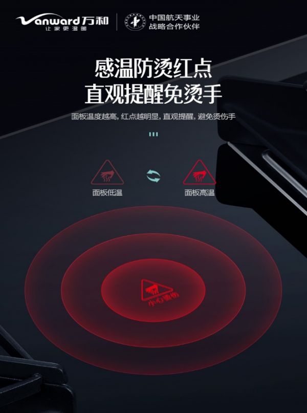 面板温度越高,红点越明显,保护双手不被烫伤,温度越高越红,时刻提醒您注意烫伤安全。