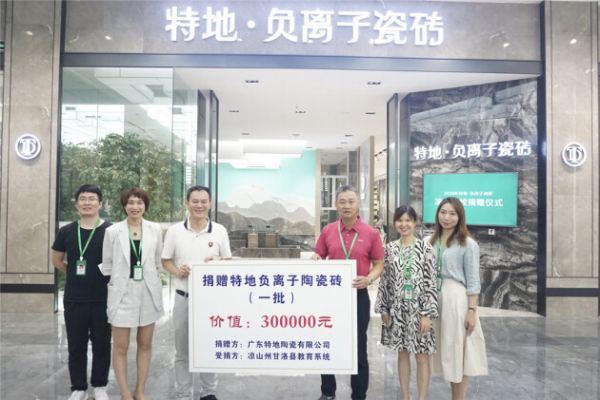 2020年7月6日,驻凉山彝族自治州甘洛县领导小组一行来到特地·负离子瓷砖总部进行调研,并收到一批来自特地捐赠的——价值30万元的特地·负离子瓷砖。特地长期致力于慈善事业,始终心系贫困山区学子,希望为贫困地区孩子的教育,尽企业的一点绵薄之力。