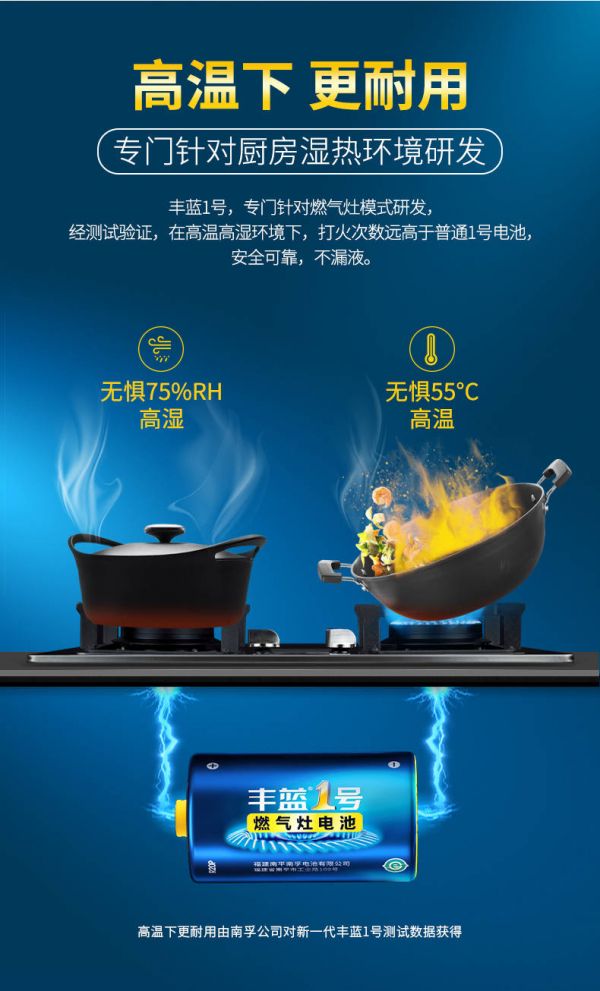 对于消费者而言,选用一款燃气灶电池需要考虑的主要包括耐用、安全、卫生、环保等方面。丰蓝1号在深入调研消费者需求之后,结合燃气灶电池的使用场景,不断强化产品性能,改善用户使用体验。