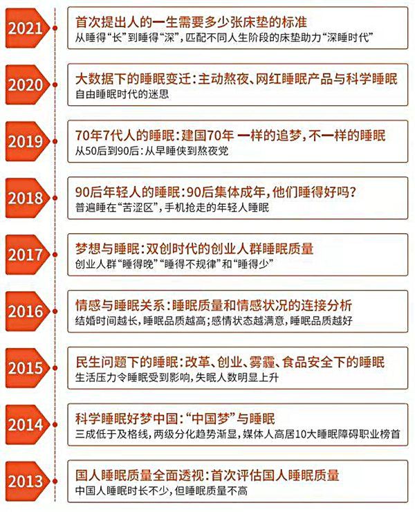 喜临门敏锐地意识到睡眠质量下滑正在逐渐演变成广泛存在的社会问题。2012年,喜临门联合中国医师协会、中国睡眠研究会等专业机构,开启了长达10年的国人睡眠状况社会调查和深度研究,从多个角度反映了经济飞速发展的时代背景下,国人的生活方式以及生理和心理健康的变化。