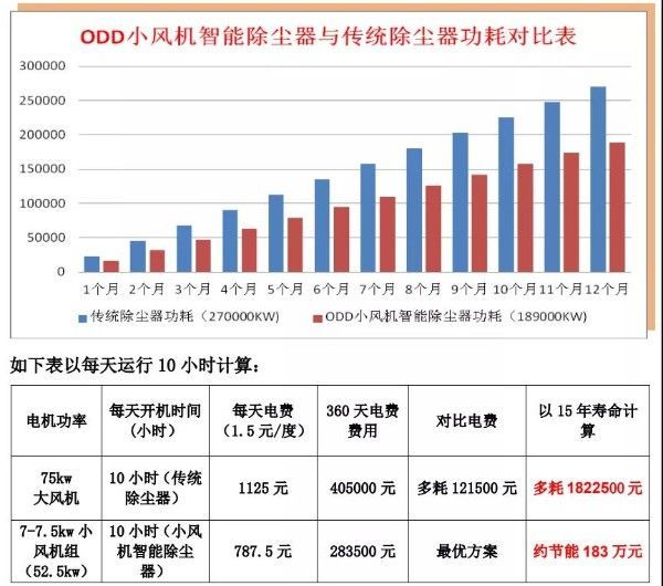 与传统除尘器相比,领拓中央除尘设备在每天开机10小时的情况下,15年可节能达183万元。
