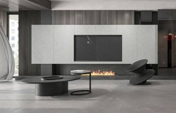 当然,除了以上冷暖两种色调的瓷砖外,黑白灰等经典色也是客厅地砖最常见的一种颜色。白色让客厅变得更加明亮通透;灰色充满艺术气息,可让客厅显得更优雅;再用黑色地砖来点缀,会让客厅更具空间装饰感。