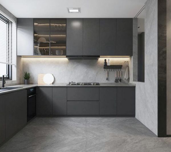 众所周知,厨房的操作环境,是一个高温环境,所以在选择瓷砖的色彩时,应当以浅色和冷色调为主,比如白色、浅灰色,又或者最近深受大家欢迎的素色系列石纹瓷砖,让空间的视觉得到扩大延伸,又有一种纯粹的美。