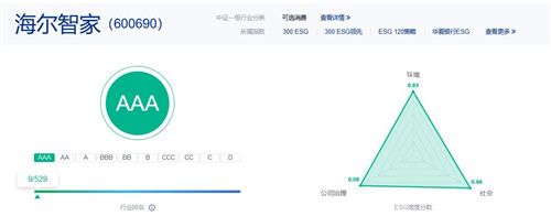 中证指数ESG评级:海尔智家AAA、美的AA、格力A