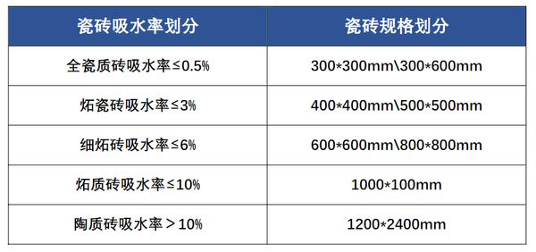 瓷砖胶既然是服务于瓷砖铺贴的产品,它的产品属性必然随着瓷砖属性而行,瓷砖在选购的时候它的吸水性、规格都是需要考虑的重要因素,市面上的瓷砖按照吸水性有哪些分类?瓷砖的规格都有哪些型号?家园小哥做了一些总结给大家做参考!