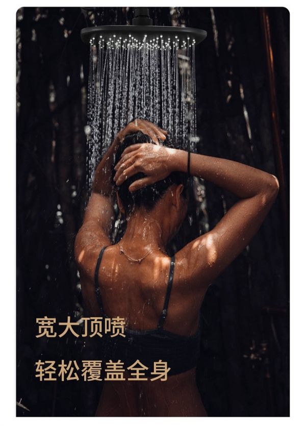 宽大花洒喷淋,更广覆盖身体范围,每一寸肌肤尽享舒适解压沐浴。