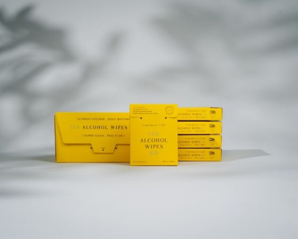 ch22 75%酒精棉片外包装是一整个小黄盒,宛如一抹黄色在无情的疫情中温暖人心,抚慰不安的内心。