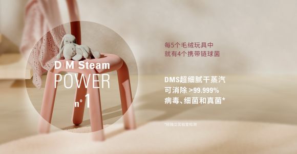 Laurastar专有DMS超细腻干蒸汽技术由超细和超强的高温蒸汽组成,蒸汽输出速度超过90公里/小时,最快可达129公里/小时,温度超过100℃,最高可达160℃。这使得在日常生活中可消除主要病原体(细菌、病毒、真菌)和过敏原(尘螨、花粉)方面具有显著的效果。