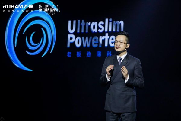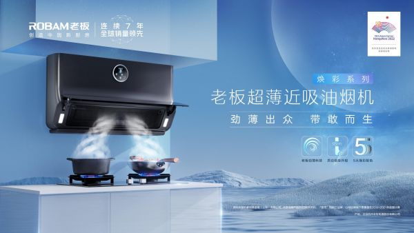 2022年3月30日,老板电器召开以“让科技厨房的起点更高点”为主题的中国新厨房科技新品发布会。会上,老板推出全新超薄近吸油烟机焕彩系列,18cm超薄机身,全新劲薄科技。创新源点低吸,5大焕彩配色,以“劲薄出众,带敢而生”的王者姿态,开启烟机行业的“劲薄”时代。